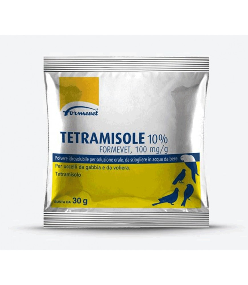 - Polvere idrosolubile per soluzione orale, da sciogliere in acqua da bere a base di Tetramisolo. Per uccelli da gabbia e da voliera.